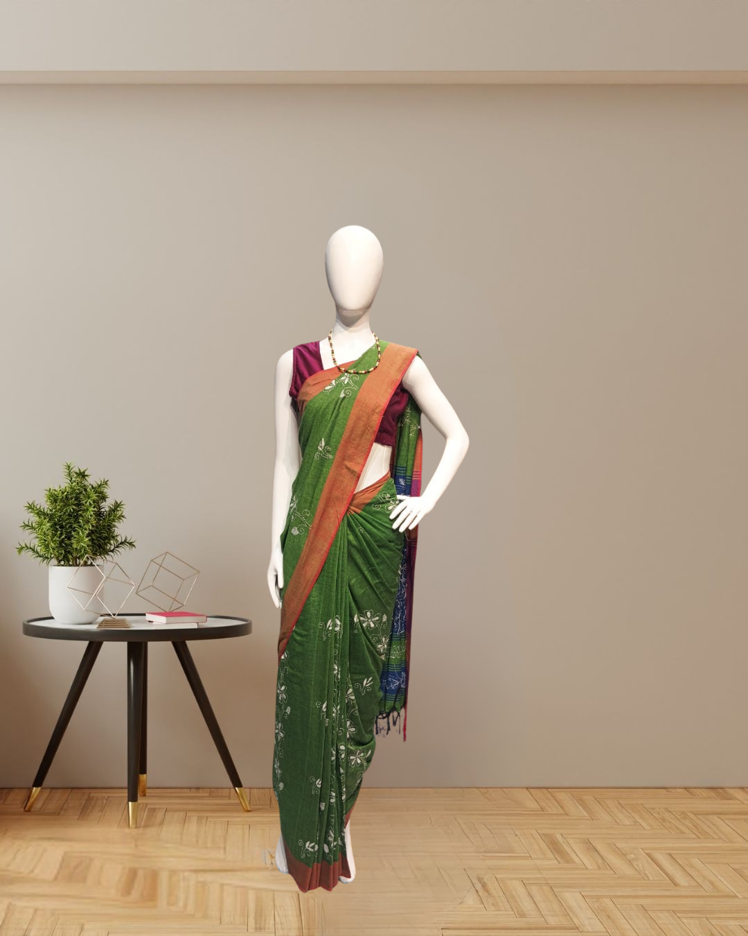 Handloom Cotton Saree with Floral Motif – Soft & Breathable Fabric