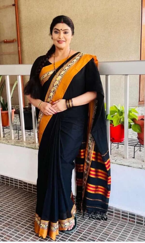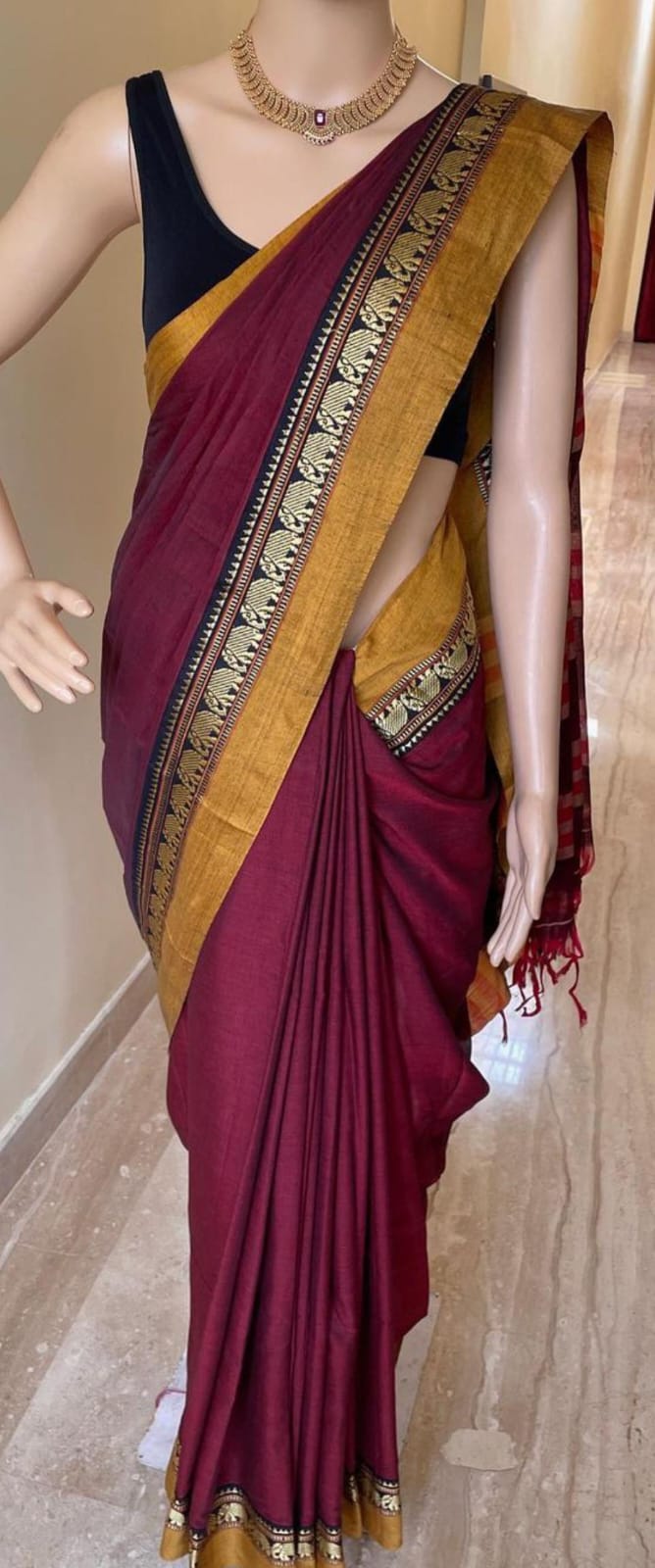 ✨ Traditional Narayanpeth saree crafted in pure mercerised cotton (2/100s) with a soft, smooth texture.
