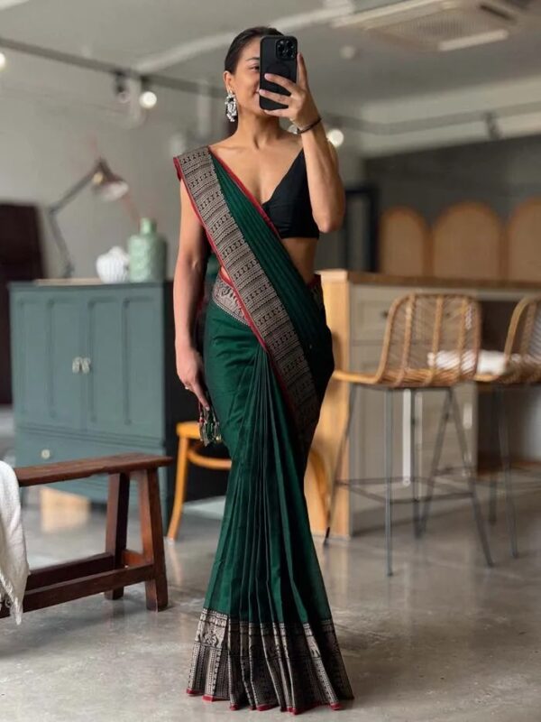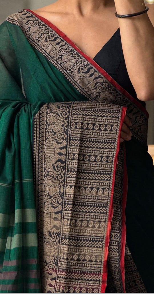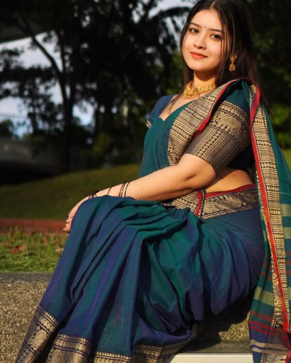 A graceful Narayanpeth saree featuring a charming small elephant border, crafted in pure mercerised cotton for all-day comfort. Perfect for daily wear, office wear & festive occasions, blending tradition with elegance 🤍