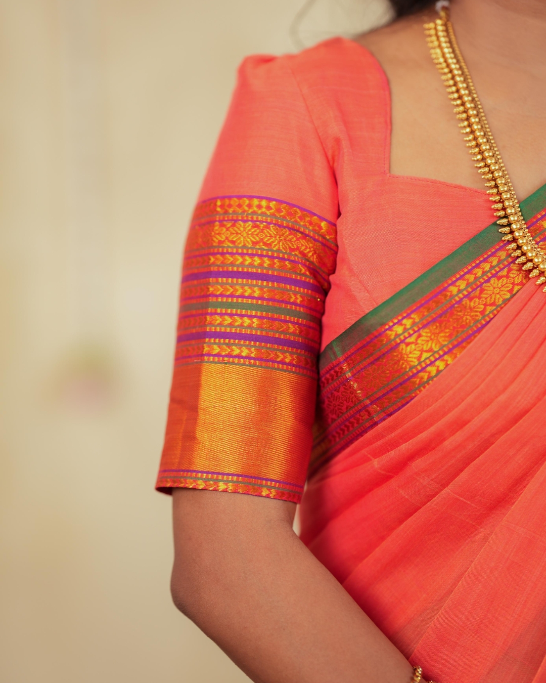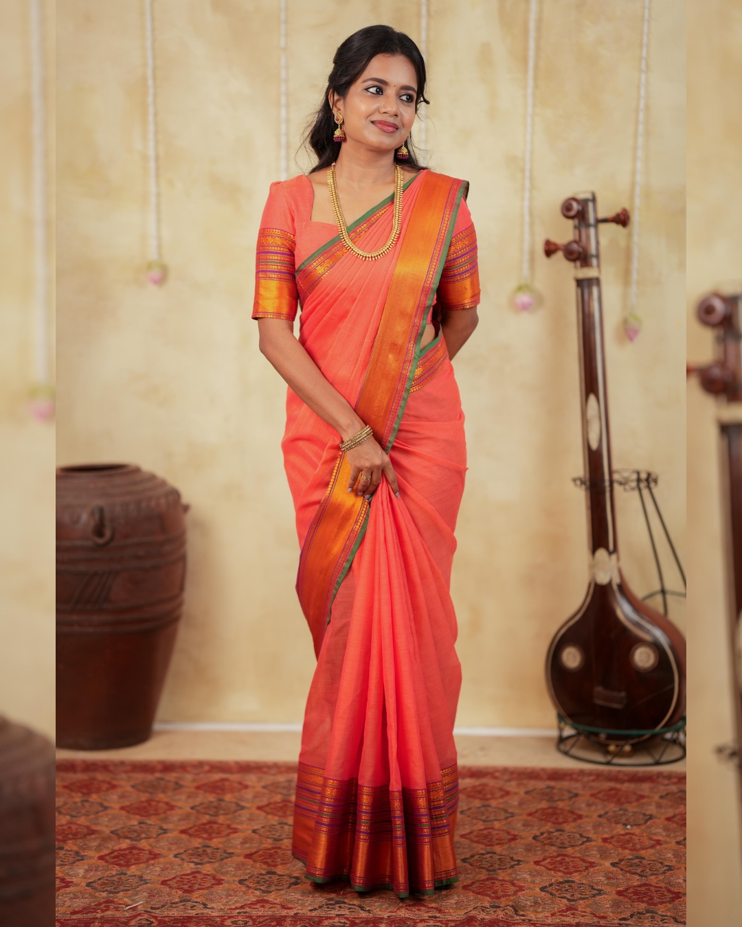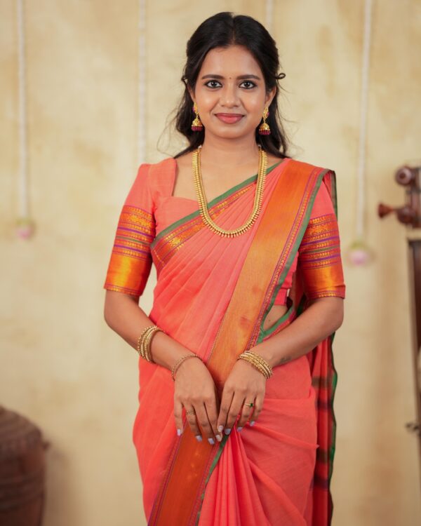Sudarshini – Narayan Peth Pure Cotton Saree Peach-Orange