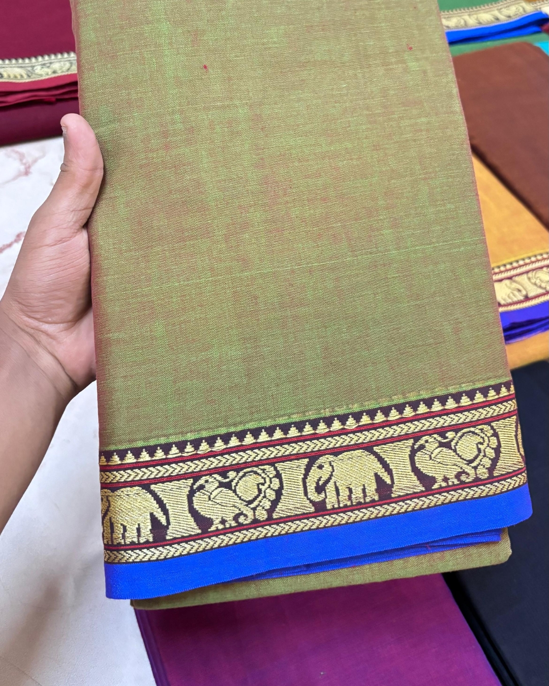 Ragini – Narayan Peth Pure Cotton Saree Olive Green